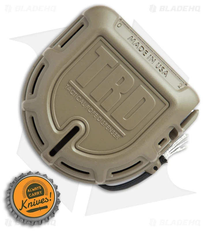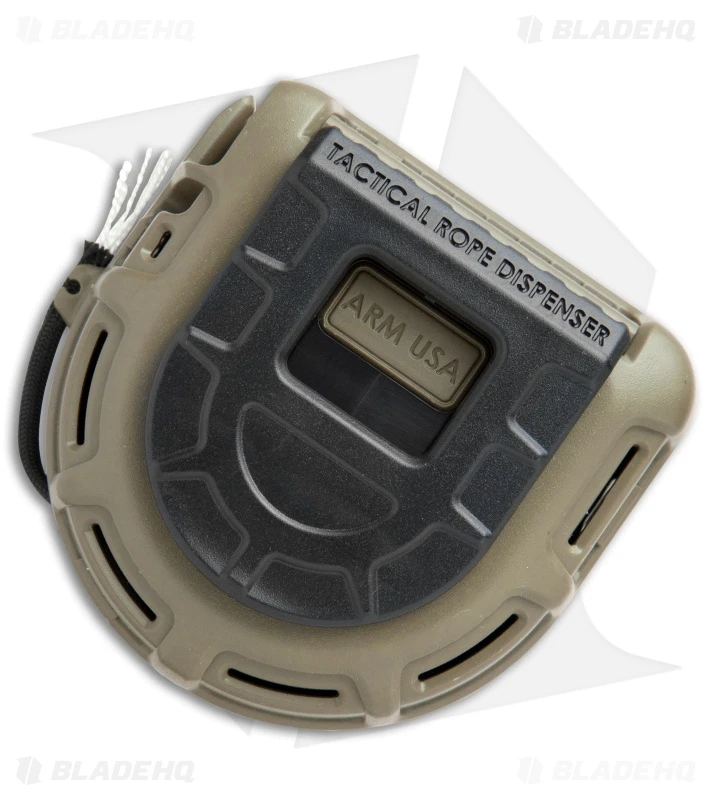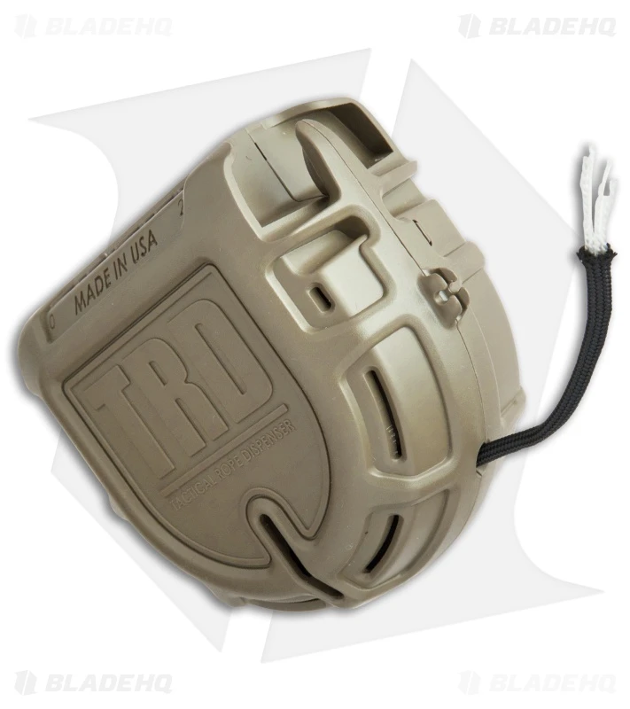 This Tactical Rope Dispenser comes in a Flat Dark Earth case with 50 ft. of black 550 paracord. The Atwood Rope TRD was created by a Special Ops paratrooper to provide a quick, tangle-free option for delivering paracord when you need it. It features a rugged impact resistant case and a built in high carbon cutting blade that eliminates the need for any additional tools. Item includes a heavy duty belt clip that attaches to the hip for fast one-handed operation.