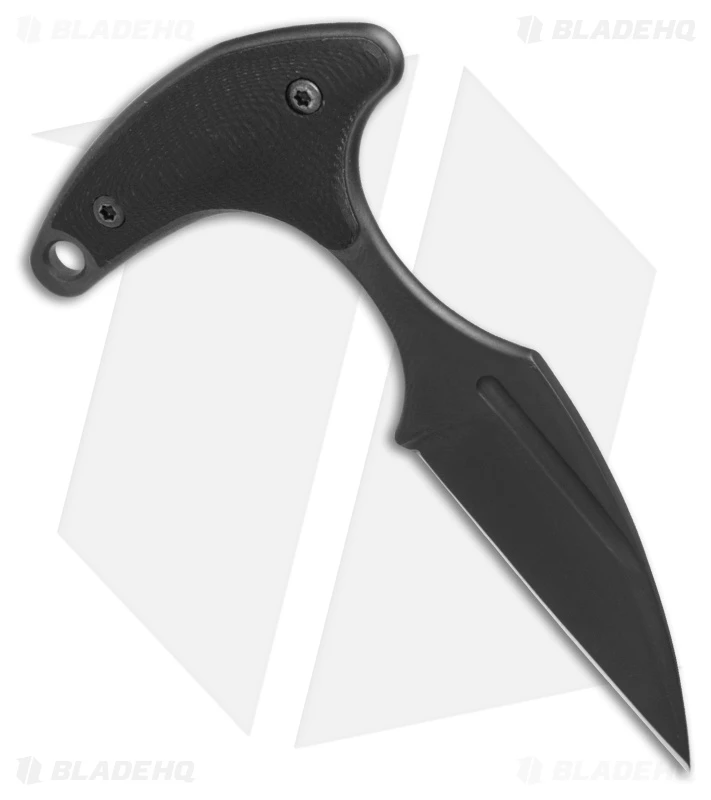 The L’Innocent Push Dagger from Bastinelli Knives is an ultra-compact design that can be comfortably carried on a belt or as a neck knife. This model has a PVD black finished Bohler N690Co blade and rounded black G-10 handle scales. It includes a fitted Kydex sheath with a removable stainless steel clip.