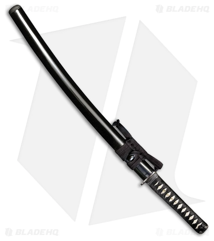 - Rayskin handle with classic black braid cord wrapping and brass Menuki.