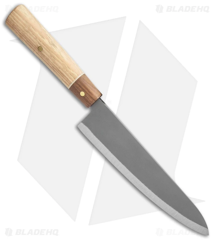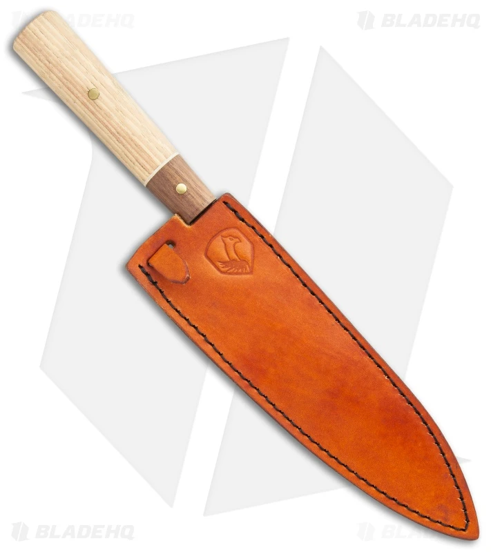 The Condor Konduru series are a collection of Japanese-inspired kitchen knives. The Gyuto shares the styling of the classic Japanese chef’s knife, but is made with the the Central American flare Condor is known for. The blade has a flat grind with a tall secondary bevel that functions much like a Scandinavian grind. The handle is made of hickory wood with a walnut bolster and brass pins. The knife includes a leather sheath for easy travel. If you ever wanted a mashup of a bushcraft knife and a kitchen knife, this is the one for you!