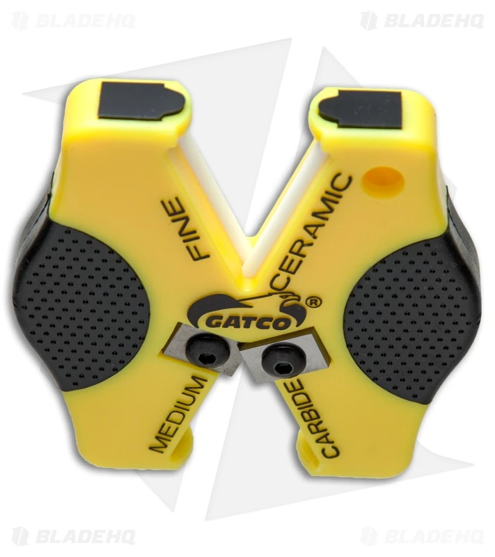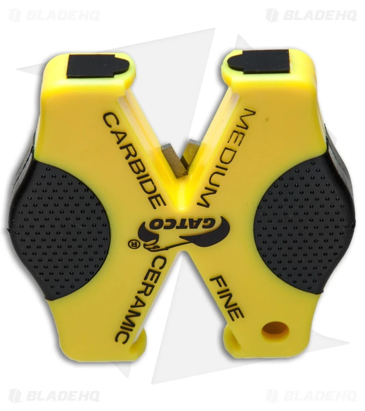The Gatco Micro-X Double Duty features a compact design with a dual sharpening system that offers medium carbide sharpening rods and fine ceramic rods. It easily sharpens plain and serrated blades with preset sharpening angles. Simply pull the knife through the medium grade rods to reshape the bevel of a dull blade, then pull through the fine grade rods to finish the blade with a fine polished edge. Item includes a rubber grip and a keychain/lanyard hole for convenient use and carry.