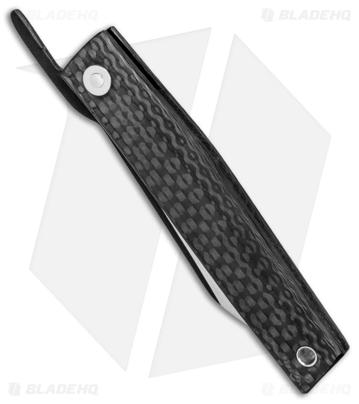 The OFF FK Series from Hiroaki Ohta offer exceptional materials and craftsmanship, while not breaking the bank. It has a carbon fiber handle and D2 tool steel blade with a razor sharp edge. Includes a leather pouch.
