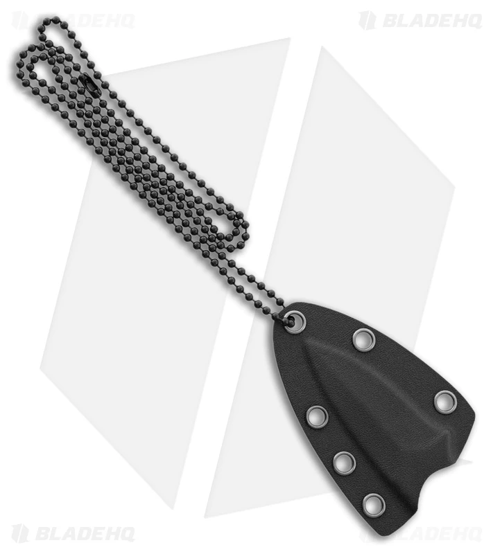 The Hoffner Bodyguard is a slim, compact neck knife made from a single piece of 440C stainless steel with a black stonewashed finish. A hole in the handle provides a balanced grip for easy transitions between traditional and reverse grips. The included molded polymer sheath and neck chain allow comfortable neck carry and quick deployment.