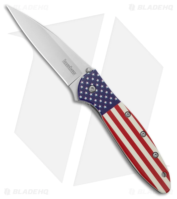 Kershaw Leek Assisted Opening Knife USA Flag (3" Bead Blast) 1660USA -Knife Craft Store Kershaw Leek Assisted Opening Knife USA Flag Bead Blast BHQ 209736 kr spine large