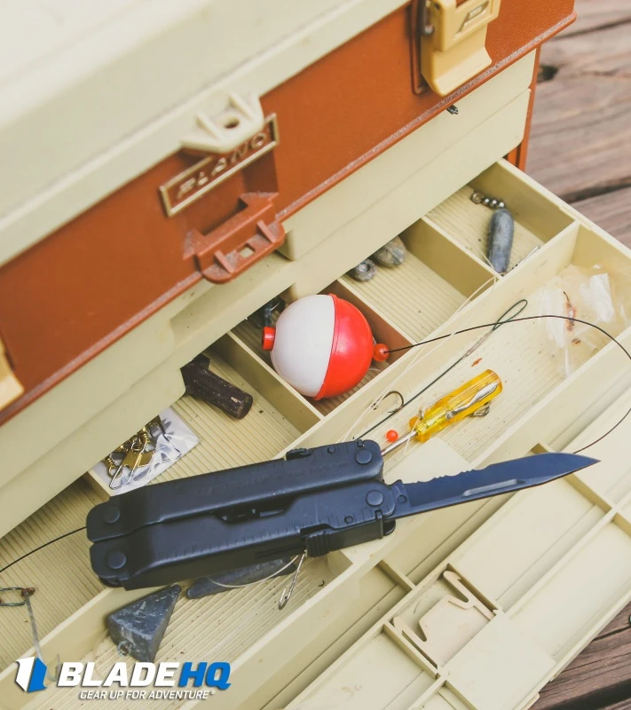 Leatherman Super Tool 300 Black W/ Black Sheath (19-in-1) 831105 -Knife Craft Store Super Tool 300 Lifestyle Outdoor Fishing In tackle box with open blade large
