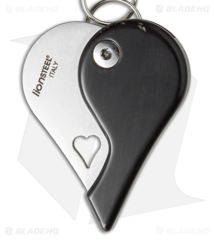 The Lionsteel Lionbeat is a mini folding knife designed by Sardinian knife maker Costantino Zanda. Based on the Sardinian tradition of Su Coru (The Heart), this knife has a sweet heart shape and a razor sharp chisel ground blade. This model is equipped with a dark horn handle and a satin finished blade made from AISI 440 stainless steel. Item includes a steel key ring for attaching to keys or your favorite lanyard.