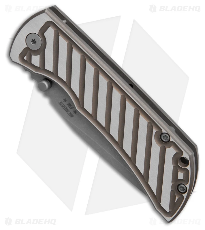 - Gray titanium handle with a Bronze “Fastback” milled design.