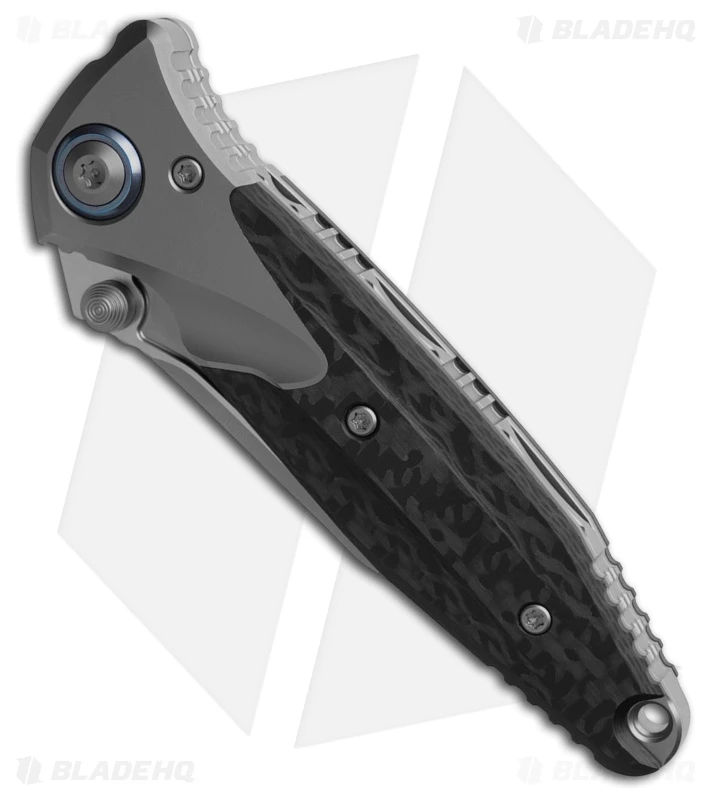 - Handle: Black carbon fiber inlays in bead-blasted titanium handle.