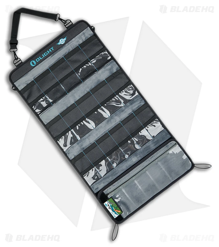 The Olight Exploit is built to carry your knives, flashlights, and other EDC tools and accessories. Ideal for storage, display, and transportation, the Exploit features more than 20 compartments and an easy-carry strap. Made from durable black nylon, you can rest assured knowing that your knives are well protected and organized.