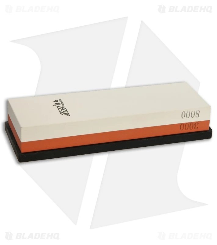 The Real Steel Japanese Whetstone Fine is a reliable sharpening stone for keeping your knives in their best shape. The two-sided Corundum stone measures 7.1″ x 2.4″ x 1.2″ with one sided having a grit of 3000 and the other 8000. It also includes two interchangeable non-slip silicone bases.