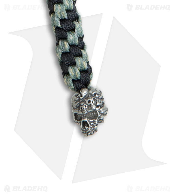 This Mind Skull Lanyard from Schmuckatelli includes a pewter skull bead and a black and gray braided lanyard cord. Accessorize your favorite knives with a unique lanyard or bead from Schmuckatelli Co.
