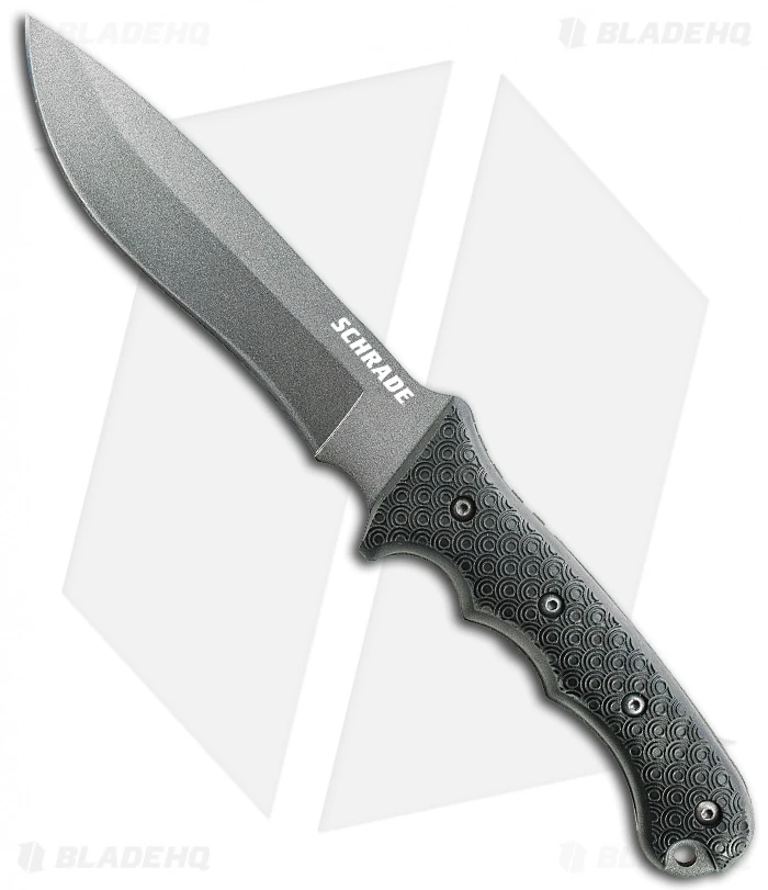 The SCHF9 fixed blade from Schrade features a drop point style blade made of 1095 high carbon steel. Full-tang with TPE rubber scales and a lanyard hole. The SCHF9 includes a ballistic nylon sheath with buckled outer pocket and nylon cord leg strap.