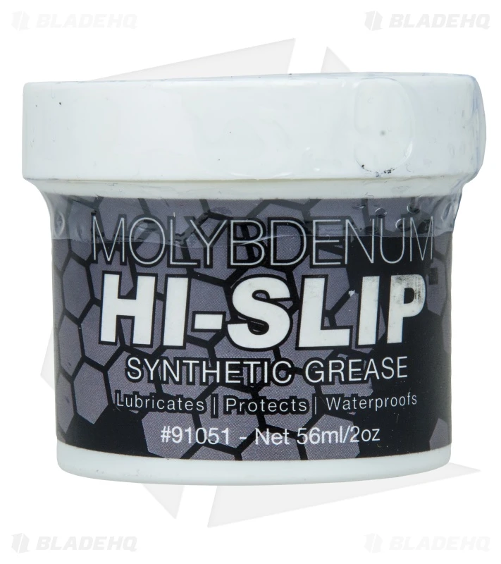 The Hi-Slip Grease from Sentry Solutions lubricates, waterproofs and prevents rust, even in saltwater. All the benefits of oil but stays put. Designed to not migrate from -54ºC/-65ºF to 343ºC/650ºF. Synthetic blend exceeds mil-specs for moly grease. Lubricates and prevents galling on all types of metal: stainless steel, blued metal, titanium and aluminum. Concentrated and extremely long lasting, a little goes a very long way. Size: 2 oz. (56g)
