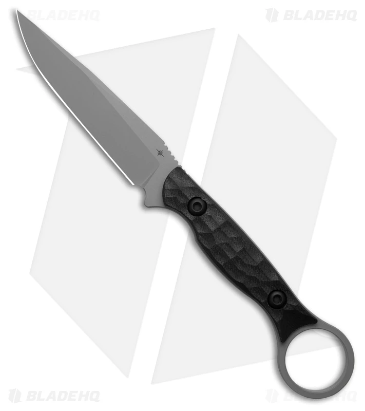 The Serpent is a slimming tactical fixed blade from Toor Knives. Jimping on the spine coupled with the 1 1/8″ ring permits a solid grip. The textured handle is slip-resistant and soft on the hand while remaining durable during cutting tasks. The steel is substantial in terms of edge retention and hardness.