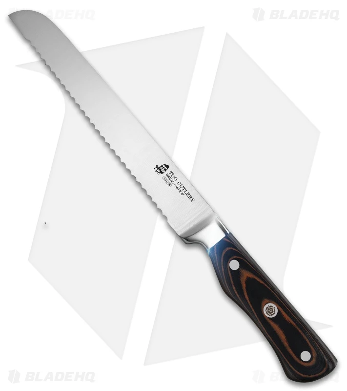 The Tuo Legacy series of kitchen knives features satin finished blades and black and brown G-10 handles. The knives feature forged bolsters, a mosaic rivet, and ergonomically contoured handle scales.