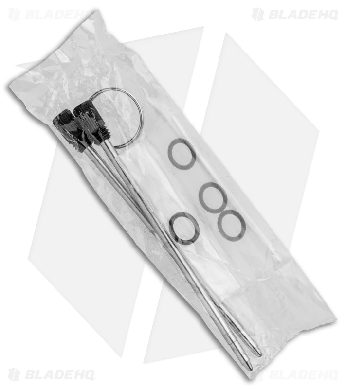 The Syrinx is a compact and stylish EDC pen from WE Knife Co. This model has a black anodized titanium body. Item includes a stainless steel key ring and 2 extra ink cartridge refills. Add a little WE to your EDC with the Syrinx.