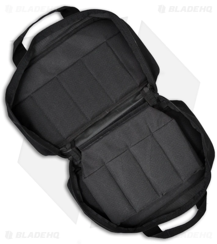 If you are looking for a way to store or transport your knives then check out the Zero Tolerance double zippered case with 16 padded pockets for your folding knives. Velco attached sleeve can be removed for adaptability. The pockets are roughly 2.25″ x 4.5″ and the case is 13″ x 7.5″ x 4″ thick. Features convenient carry handles for transport.